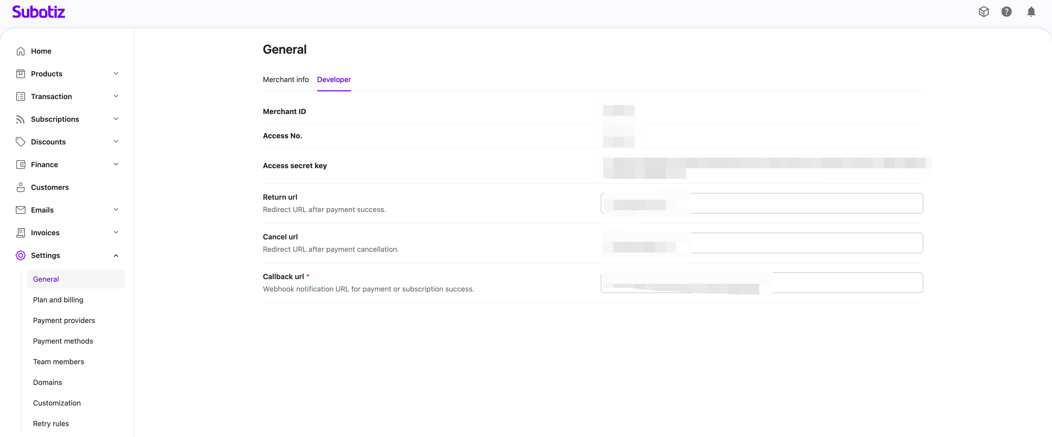 - Log in to the Subotiz merchant platform to review transaction records and subscription records.